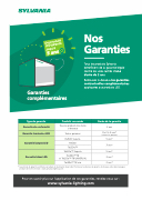 Nos Garanties Tous les produits Sylvania bénéficient de la garantie légale contre les vices cachés d’une durée de 2 ans. Retrouvez ci-dessous les garanties contractuelles complémentaires appliquées aux produits LED. Garanties complémentaires Tous les produits non listés ci-dessous Toutes gammes RefLED Superia RefLED ToLEDoTM ToLEDoTM Superia ToLEDoTM T8 et ToLEDoTM T8 UNIVERSAL ToLEDoTM T8 eco 2 ans De 2 à 5 ans* (suivant les gammes) 5 ans* 3 ans* 5 ans* 3 ans* 2 ans* Type de garantie Garantie de conformité Produits concernés Durée de la garantie Garantie luminaires LED Garantie lampes LED Garantie tubes LED * La période de garantie commence à la date de facturation du produit. Retrouvez les durées de garantie de chaque code dans les pages produits de notre site web : www.sylvania-lighting.com. Pour en savoir plus sur l'application de ces garanties, rendez-vous sur: www.sylvania-lighting.com Des produits LED garantis jusqu'à 5 ans